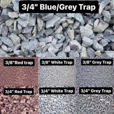 Trap rock is available in multiple sizes and colors. Commonly used for driveways it is a great low cost option.